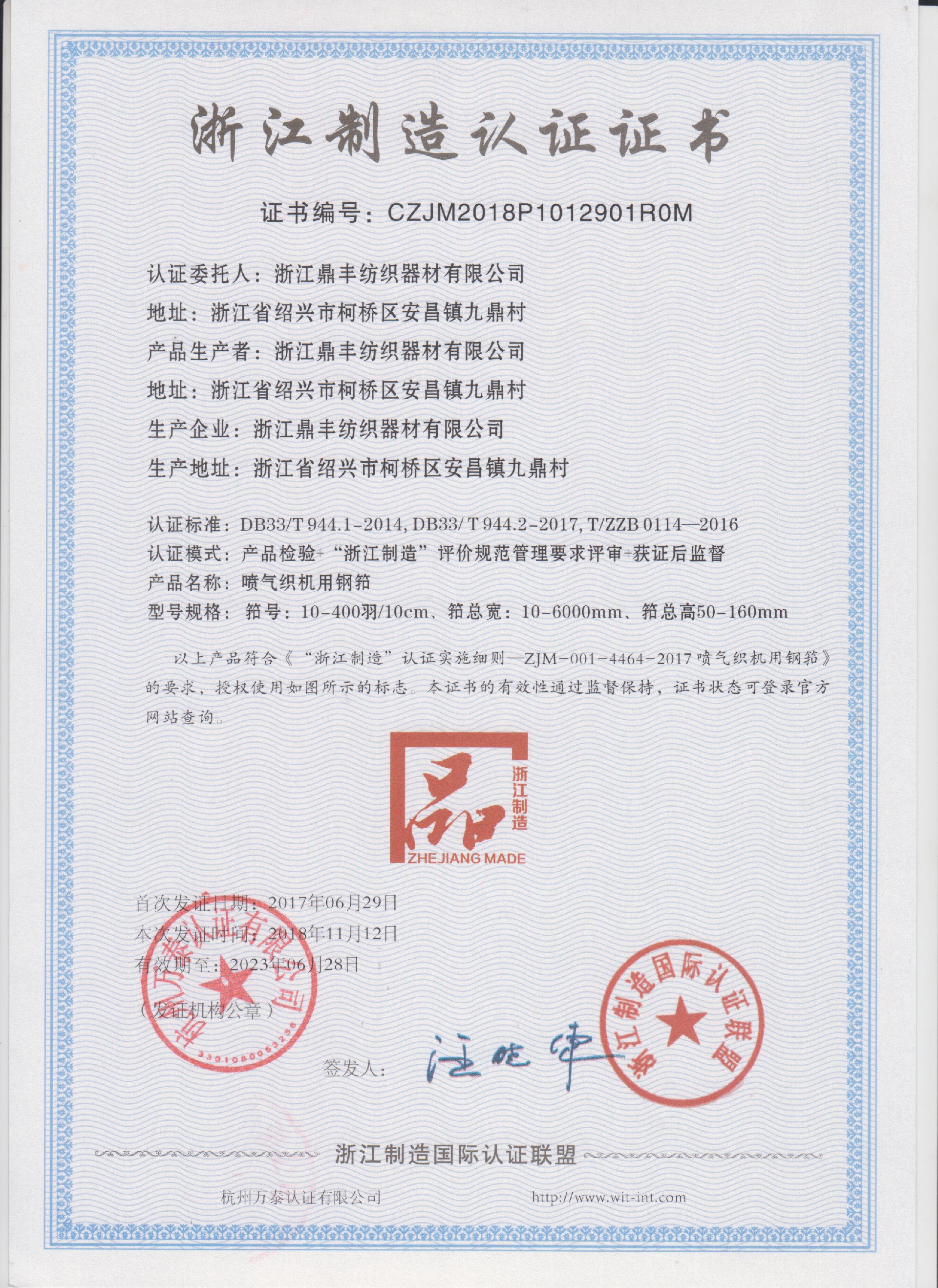 浙江鼎豐紡織器材有限公司始建于1986年,是一家專業(yè)生產各類無梭織機用鋼筘:噴氣筘、噴水筘、劍桿筘、其他類型鋼筘;鋁合金綜框、鋼片綜、停經(jīng)片、經(jīng)軸、織軸、卷布輥等產品及配件的民營企業(yè)。